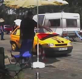 Beim Anbremsen an der schnellsten Stelle des PSV-Kurses klappte das linke Vorderrad des schmucken Peugeots ab - doch Christian konnte das Fahrzeug auf den verbliebenen Rädern halten.