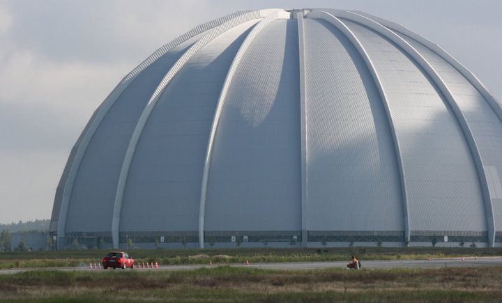 auf die Landebahn beim Tropical Islands. Die Infrastruktur war geschaffen, Zelte aufgebaut und der Kehrwagen über Fahrerlager und Strecke